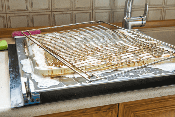Another thing to avoid is cleaning your oven racks in grass. While letting nature do its thing sounds like a great idea, you need something stronger to remove the burnt-on food and grime.